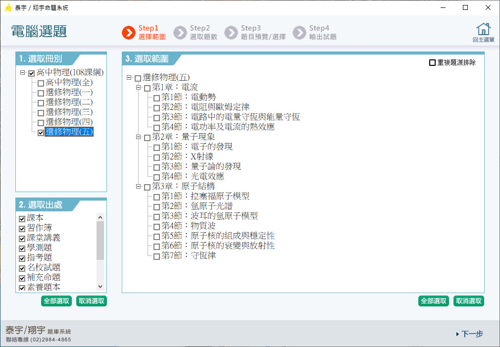 112學年上學期 高中命題光碟 泰宇版 物理科(全、選修一、選修二、選修三、選修四、選修五)(108課綱)題庫光碟